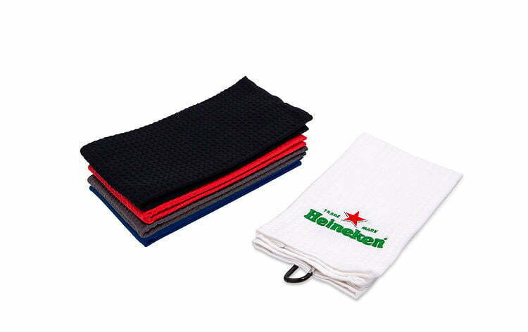 • De Wafel microfiber handdoek is super absorberend en heeft wafel motief. Er is een mooie en sterke zwarte karabijnhaak voor de bevestiging aan de tas. De Wafel handdoek is verder in zes kleuren te leveren en biedt veel ruimte voor een geborduurd logo.